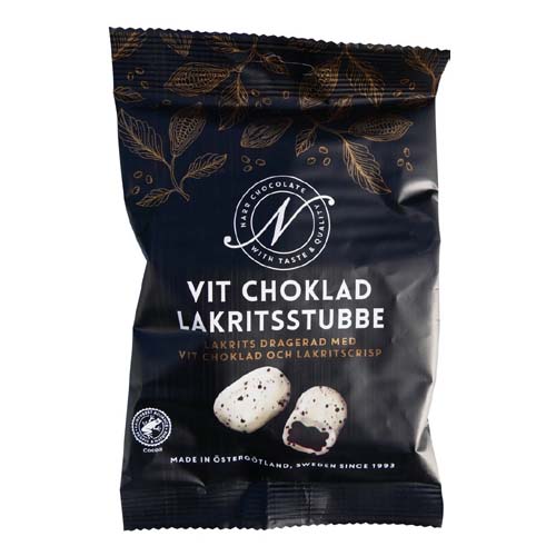 Vad vill du veta om VIT CHOKLAD LAKRITSSTUBBE 120G?