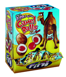 Populära roliga Fini Camel Balls tuggummi med en extra sur körsbärsfyllning i mitten.